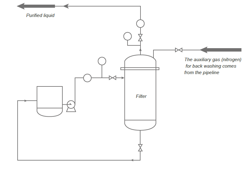 The whole filter is composed of several filtration units in parallel. The filtered liquid is used for back washing and regeneration. When conducting back washing on one filtration unit, the other units shall be used for normal filtration.?